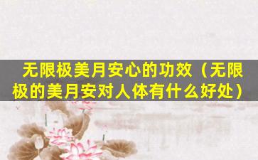无限极美月安心的功效(无限极的美月安对人体有什么好处)