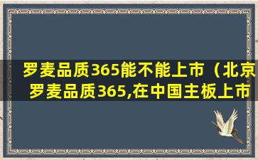 罗麦品质365能不能上市(北京罗麦品质365,在中国主板上市了吗)