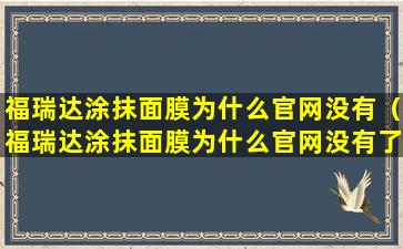 福瑞达涂抹面膜为什么官网没有(福瑞达涂抹面膜为什么官网没有了)
