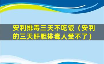 安利排毒三天不吃饭(安利的三天肝胆排毒人受不了)