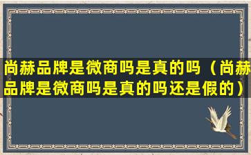 尚赫品牌是微商吗是真的吗(尚赫品牌是微商吗是真的吗还是假的)