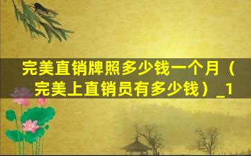 完美直销牌照多少钱一个月(完美上直销员有多少钱)