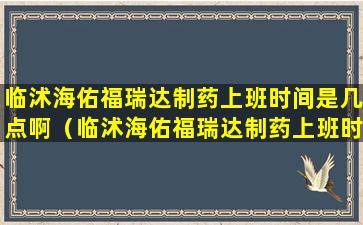 临沭海佑福瑞达制药上班时间是几点啊(临沭海佑福瑞达制药上班时间是几点啊电话)