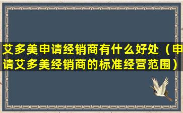 艾多美申请经销商有什么好处(申请艾多美经销商的标准经营范围)