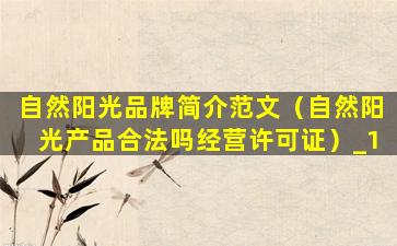 自然阳光品牌简介范文(自然阳光产品合法吗经营许可证)