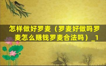 怎样做好罗麦(罗麦好做吗罗麦怎么赚钱罗麦合法吗)