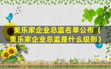 美乐家企业总监名单公布(美乐家企业总监是什么级别)