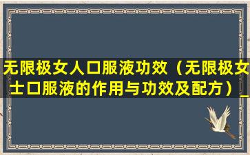 无限极女人口服液功效(无限极女士口服液的作用与功效及配方)