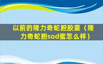 以前的隆力奇蛇胆胶囊(隆力奇蛇胆sod蜜怎么样)