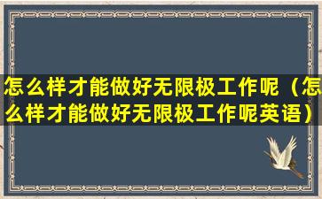 怎么样才能做好无限极工作呢(怎么样才能做好无限极工作呢英语)