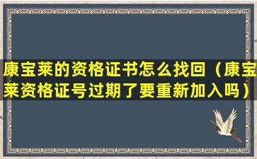 康宝莱的资格证书怎么找回(康宝莱资格证号过期了要重新加入吗)