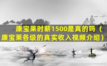 康宝莱时薪1500是真的吗(康宝莱各级的真实收入视频介绍)