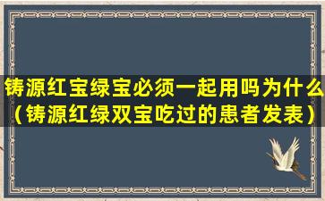 铸源红宝绿宝必须一起用吗为什么(铸源红绿双宝吃过的患者发表)