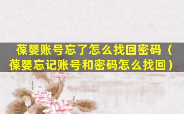 葆婴账号忘了怎么找回密码(葆婴忘记账号和密码怎么找回)