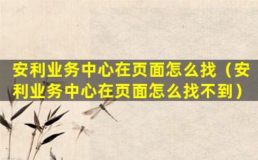 安利业务中心在页面怎么找(安利业务中心在页面怎么找不到)