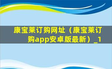 康宝莱订购网址(康宝莱订购app安卓版最新)