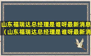山东福瑞达总经理是谁呀最新消息(山东福瑞达总经理是谁呀最新消息新闻)