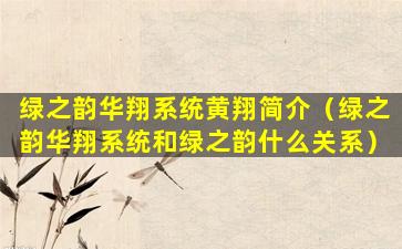 绿之韵华翔系统黄翔简介(绿之韵华翔系统和绿之韵什么关系)