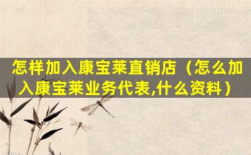 怎样加入康宝莱直销店(怎么加入康宝莱业务代表,什么资料)