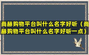 尚赫购物平台叫什么名字好听(尚赫购物平台叫什么名字好听一点)