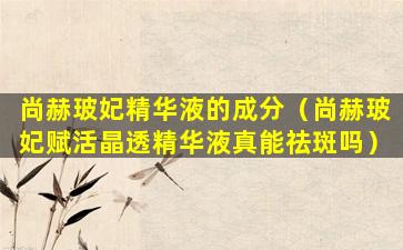 尚赫玻妃精华液的成分(尚赫玻妃赋活晶透精华液真能祛斑吗)