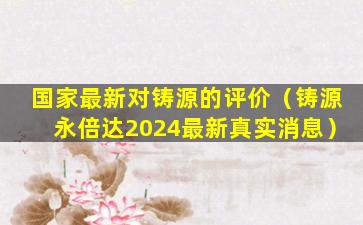 国家最新对铸源的评价(铸源永倍达2024最新真实消息)