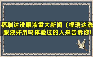 福瑞达洗眼液重大新闻(福瑞达洗眼液好用吗体验过的人来告诉你!)