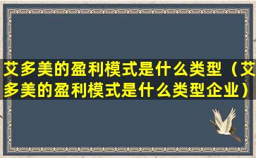 艾多美的盈利模式是什么类型(艾多美的盈利模式是什么类型企业)