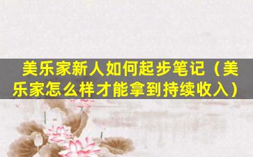 美乐家新人如何起步笔记(美乐家怎么样才能拿到持续收入)