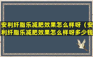 安利纤脂乐减肥效果怎么样呀(安利纤脂乐减肥效果怎么样呀多少钱)
