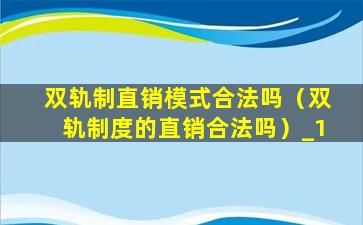双轨制直销模式合法吗(双轨制度的直销合法吗)