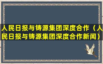 人民日报与铸源集团深度合作(人民日报与铸源集团深度合作新闻)