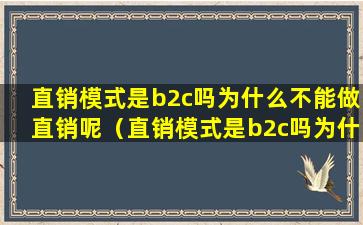 直销模式是b2c吗为什么不能做直销呢(直销模式是b2c吗为什么不能做直销呢知乎)