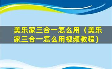 美乐家三合一怎么用(美乐家三合一怎么用视频教程)