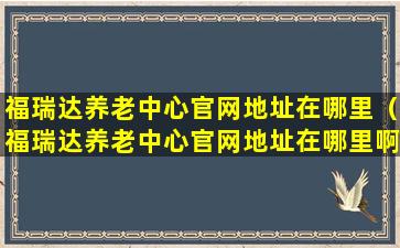 福瑞达养老中心官网地址在哪里(福瑞达养老中心官网地址在哪里啊)