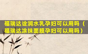 福瑞达诠润水乳孕妇可以用吗(福瑞达涂抹面膜孕妇可以用吗)