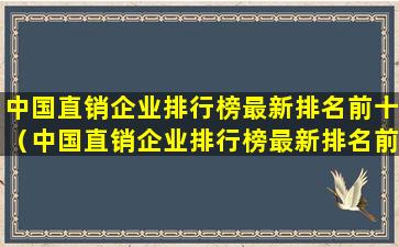 中国直销企业排行榜最新排名前十(中国直销企业排行榜最新排名前十的公司)