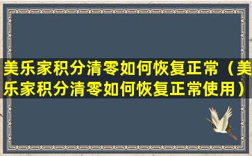 美乐家积分清零如何恢复正常(美乐家积分清零如何恢复正常使用)