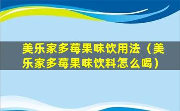 美乐家多莓果味饮用法(美乐家多莓果味饮料怎么喝)