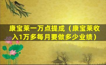 康宝莱一万点提成(康宝莱收入1万多每月要做多少业绩)