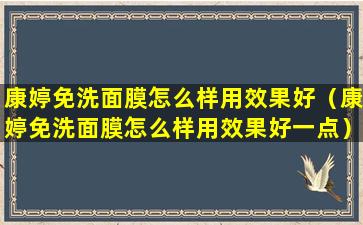 康婷免洗面膜怎么样用效果好(康婷免洗面膜怎么样用效果好一点)