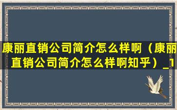 康丽直销公司简介怎么样啊(康丽直销公司简介怎么样啊知乎)