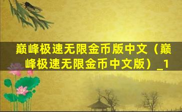 巅峰极速无限金币版中文(巅峰极速无限金币中文版)