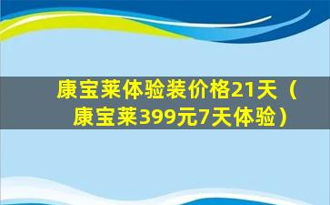 康宝莱体验装价格21天(康宝莱399元7天体验)