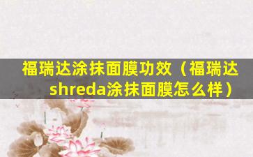 福瑞达涂抹面膜功效(福瑞达shreda涂抹面膜怎么样)