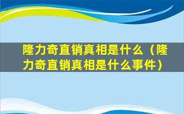 隆力奇直销真相是什么(隆力奇直销真相是什么事件)