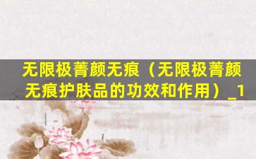 无限极菁颜无痕(无限极菁颜无痕护肤品的功效和作用)