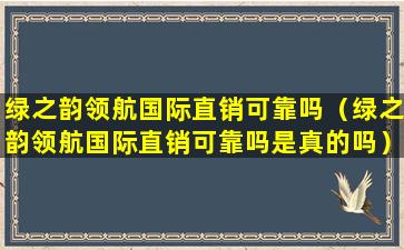 绿之韵领航国际直销可靠吗(绿之韵领航国际直销可靠吗是真的吗)