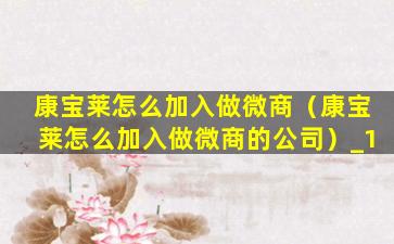 2、康宝莱怎么加入做微商的公司