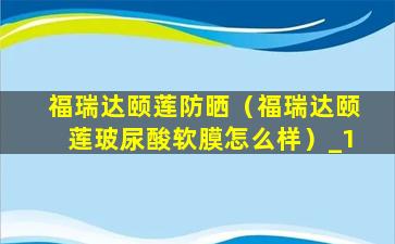 福瑞达颐莲防晒(福瑞达颐莲玻尿酸软膜怎么样)
